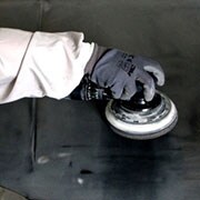 Når du forbereder sparkling, rengjør du reparasjonsområdet og fjerner alle løse lakkpartikler eller rust. Slip ned til bart, ren metall med Cubitron™ II 120+ på en DA-slipemaskin – for å oppnå overflaten som du vil sparkle med karosserisparkel.