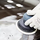 Etter manuell sliping bruker du en DA-maskin (Festool Automotive Systems LEX 150 / 5 eller Festool Automotive Systems ETS / EC 150 / 15) og 320+ for å utjevne skjøtene og bedre grunningens vedheft.