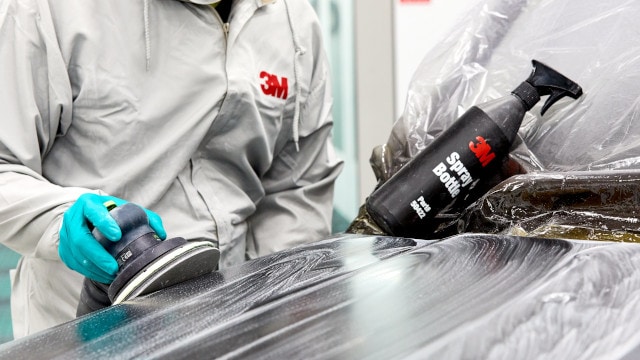 Først: Slip området med 3M™ Hookit™ Purple Finishing Film sliperondell 260L, kornstørrelse P2000;