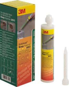 Easy250 er en gel-støpemasse i 3M’s Scotchcast™ 8882 serie. Den er særdeles velegnet til elektriske utendørsinstallasjoner eller Innendørsinstallasjoner, hvor det er risiko for vanninntrengning fra kraftig regn, oversvømmelser, høytrykksspyling, vaskehaller, basseng osv.